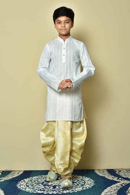 White Cotton, Silk Patterned Kurta And Dhoti Set