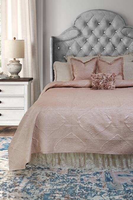 Buy_Diva Riche_Peach Washable Silk Thread Alroaz Embroidered Bedding Set_at_Aza_Fashions