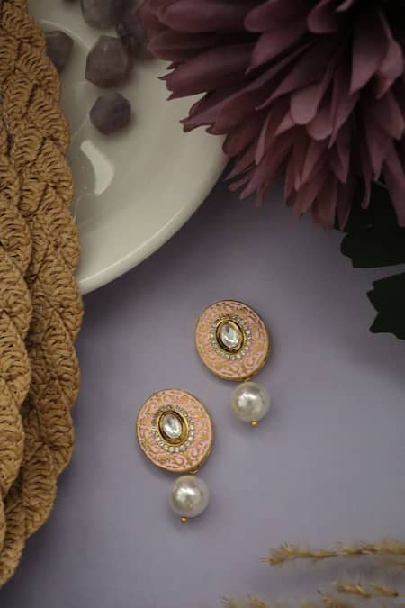 Do Taara_Gold Plated Kundan Meenakari Stud Earrings _Online_at_Aza_Fashions