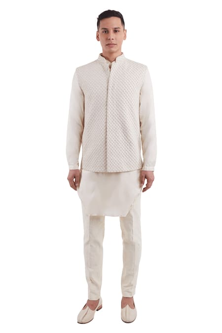 Kunal Rawal White Suiting Embroidered Nehru Jacket
