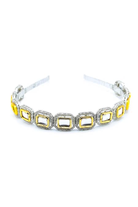 Gold Beads, Crystals Geometric Shaped Broach Studded Hairband