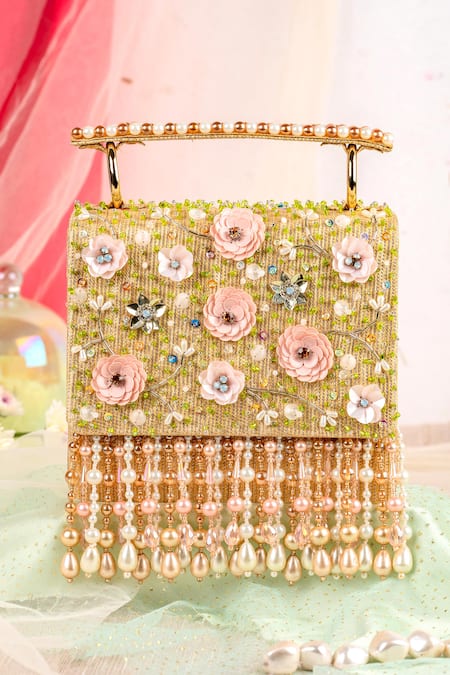 House Of Vian Gold Beads, Pearls Firdaus Floral Embellished Clutch