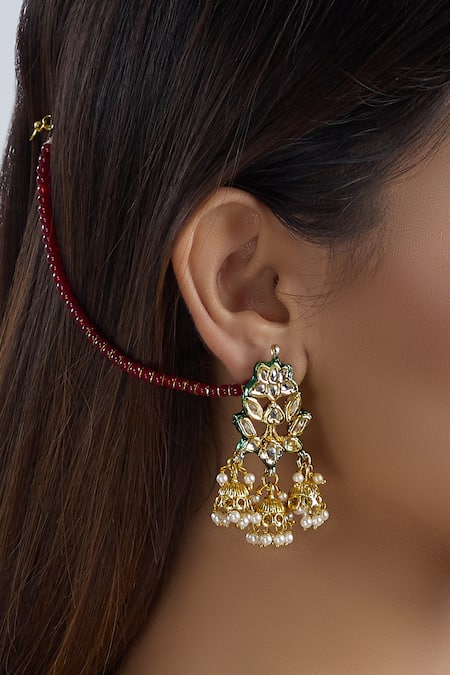 Mini jhumki danglers, Beaded hair chain design, Kundan stone embellishments