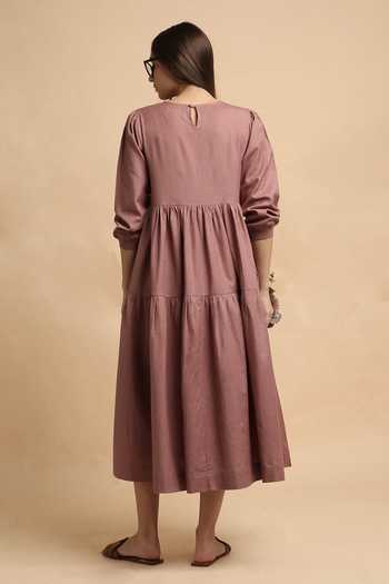 Blush Cotton Round Neck Rib Vasara Dress