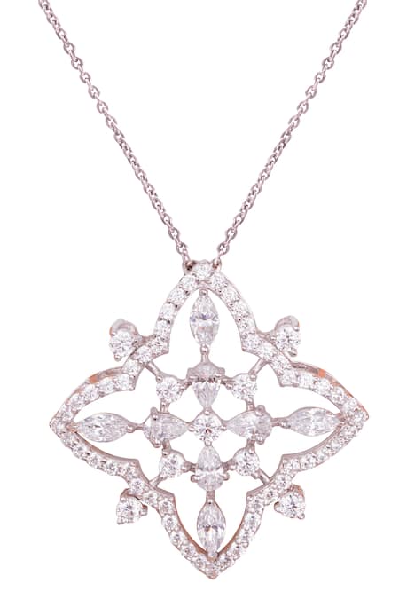 White rhodium plated pendant necklace featuring an iconic clover stone encrusted motif