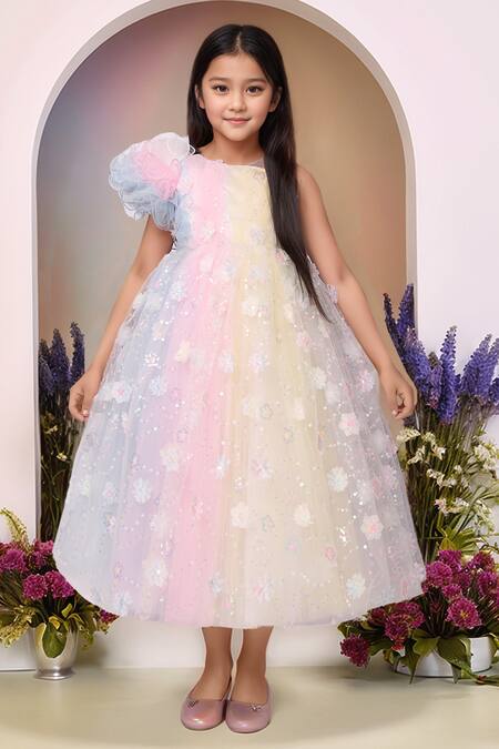 Multi Color Net Sequins Multicolor Flower Broach Gown