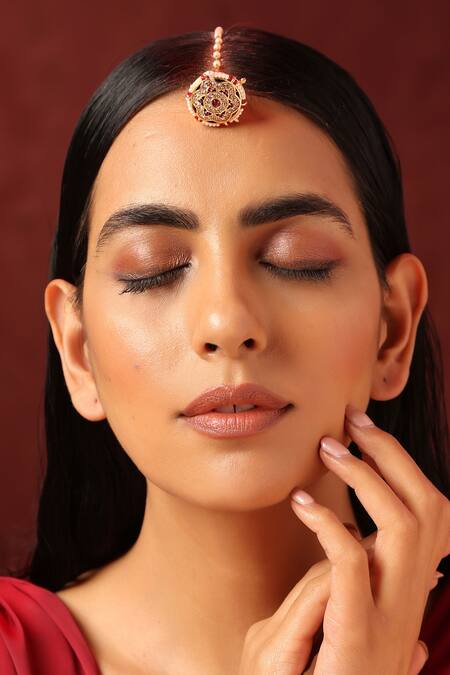 Swabhimann_Red Kundan Borla Maangtikka _Online_at_Aza_Fashions