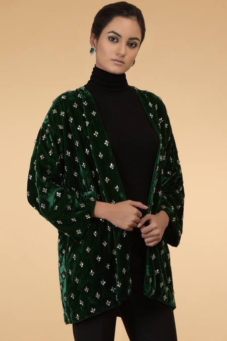 Green Silk Velvet Embellished Jacket
