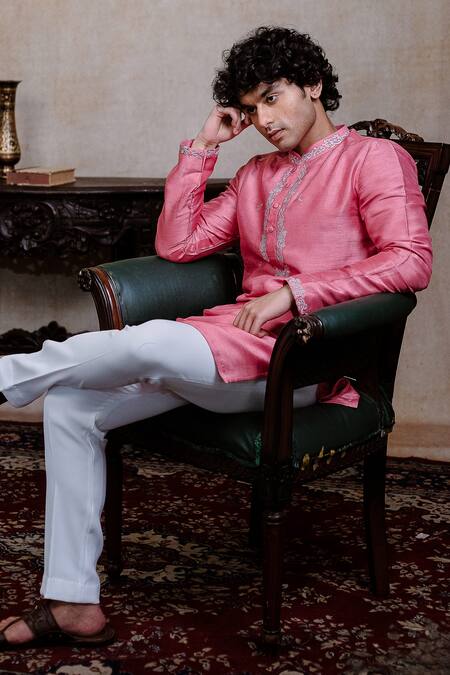 Rein Embroidered Placket Kurta With Pant