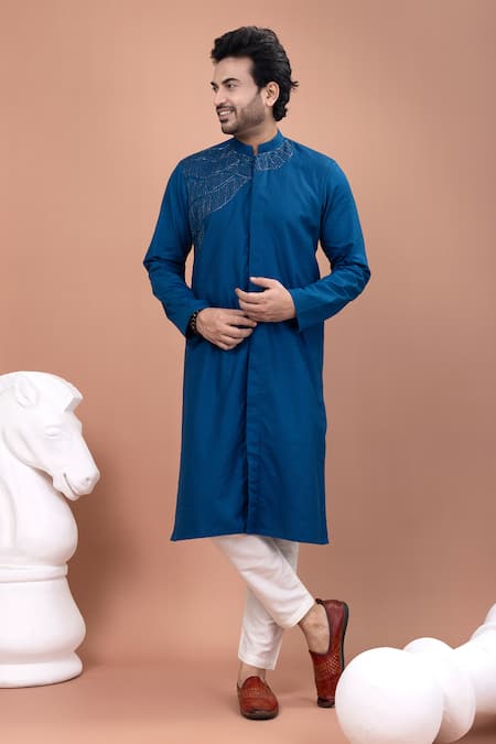 Floral Vine Placket Embroidered Kurta
