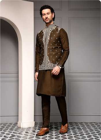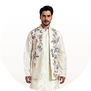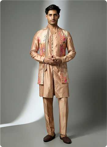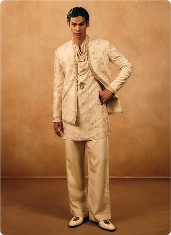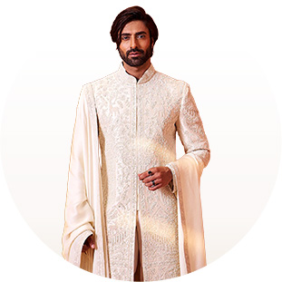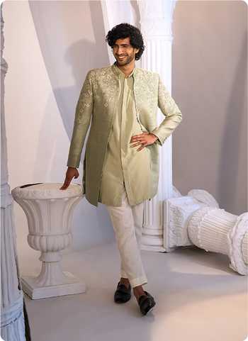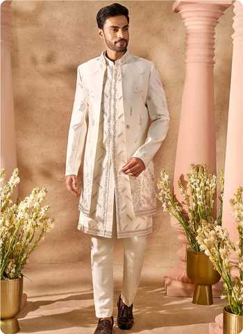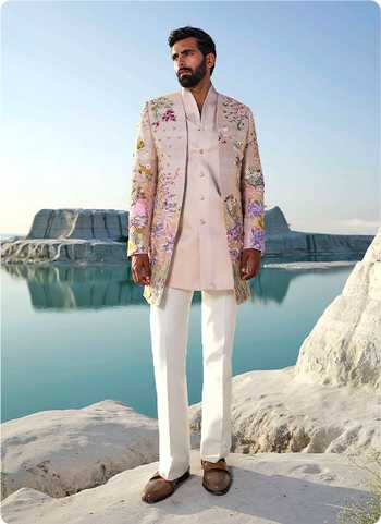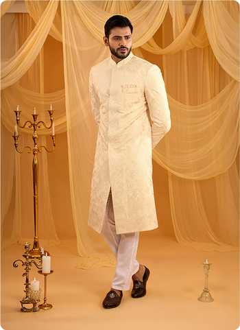 Floral Bloom Jaal Embroidered Sherwani With Contrast Pyjama