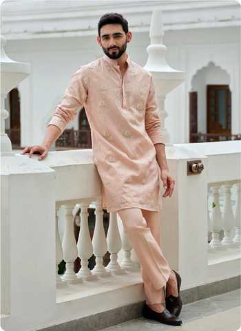Floral Jaal Woven Jacquard Kurta With Peshawari Pant