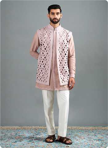 Trellis Embroidered Sherwani With Aligadhi Pant