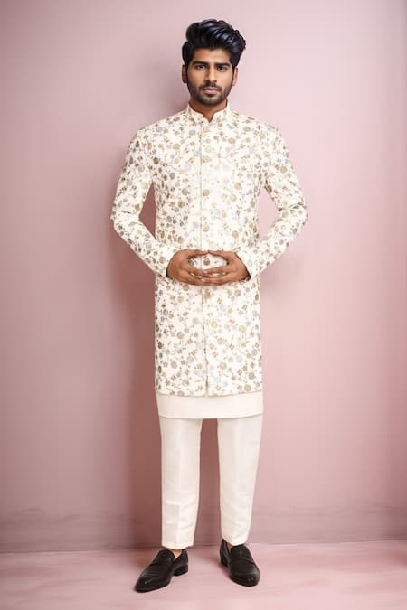 White Embroidery Floral Sherwani