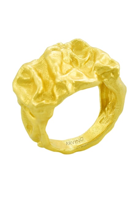 14k premium gold plated chunky molten ring featuring unique textured designs