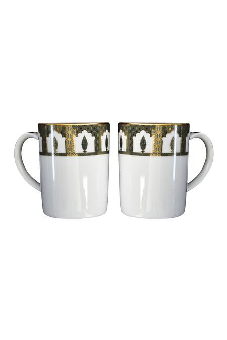 Blue set of 6 mug sets crafted in porcelain material with placement intricate Kashmiri crown pattern.