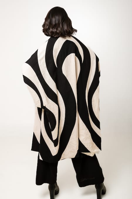 Black and white oversized jacket featuring a front open neckline and full sleeves