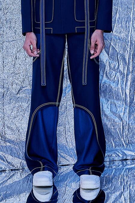 Navy blue cotton pant featuring layered cut-outs and stitchlines detailing