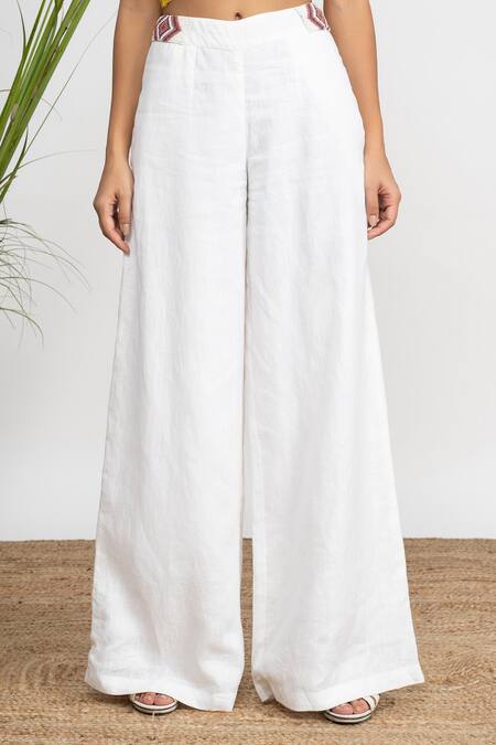 Buy_Amrta By Guneet Kondal_White Viscose, Organza, Linen Beads, Pasabagi 3d Ornamented Top And Pant Set_Online_at_Aza_Fashions