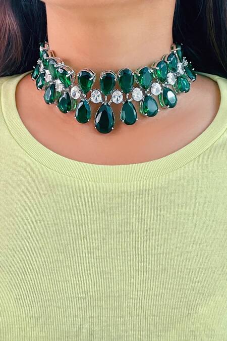 Green Stones, Diamonds Infinity Embellished Choker Set