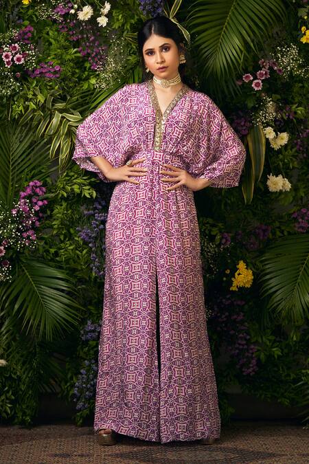 Purple Bamberg Crepe Printed Jumpsuit