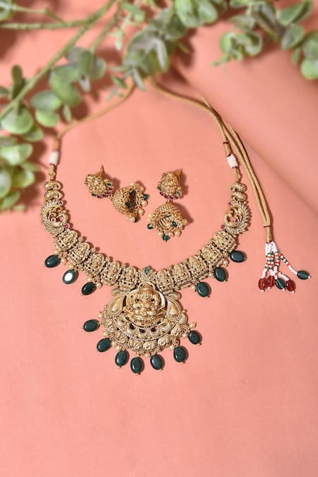 Green Stones Emerald Temple Necklace Set