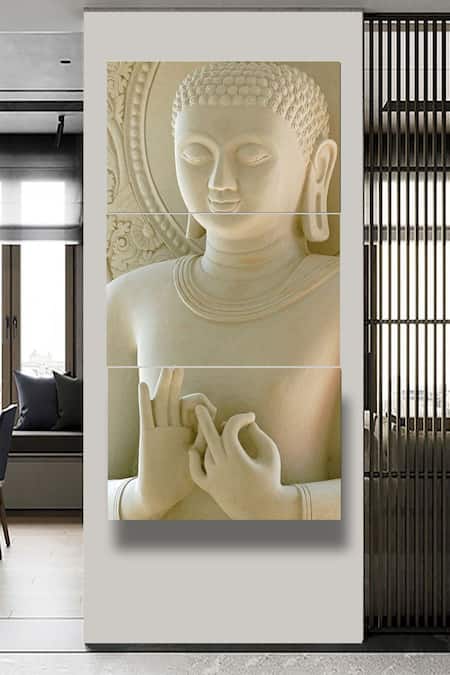 Buy_The Art House_Multi Color Canvas Digital Print Marble Buddha Paintings Set Of 3_at_Aza_Fashions