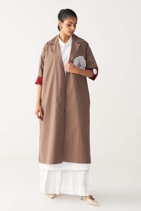 Buy_Three_Brown Poplin Applique Collared Floral Patch Jacket Co-ord Set