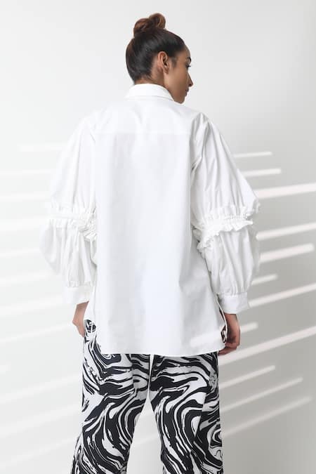 Buy_Studio Moda India_White Cotton Chains Collared Zephyrus Puff Sleeve Shirt _Online_at_Aza_Fashions
