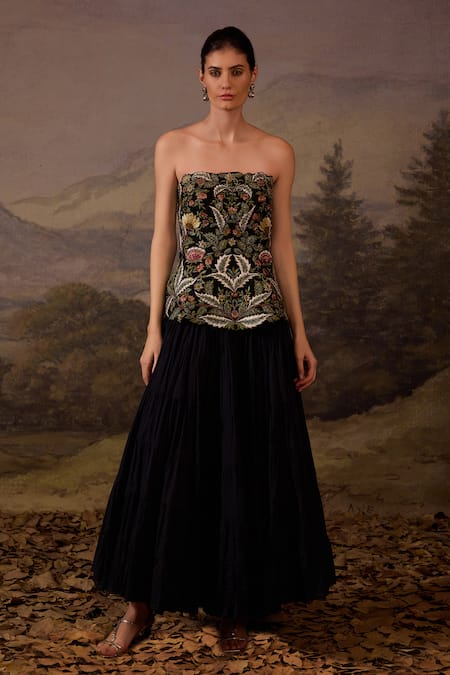 Embroidered Kaftan Jacket & Tiered Ruffle Skirt Set
