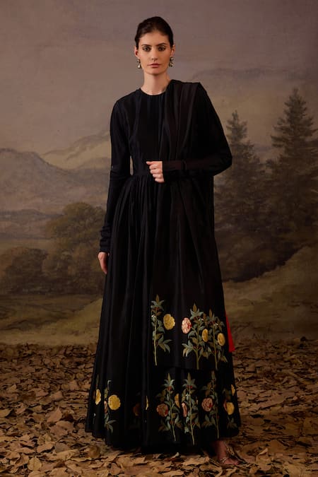 Regal Tapestry Embroidered Gown With Detachable Cape