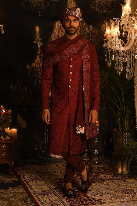 Floral Jaal Embroidered Sherwani Set