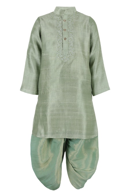 Embroidered Silk Kurta & Dhoti Pant Set