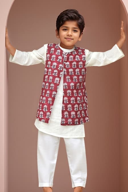 Buy_Petite Pomme_White Cotton Sequins Crimson Dahlia Kurta Set With Bundi
