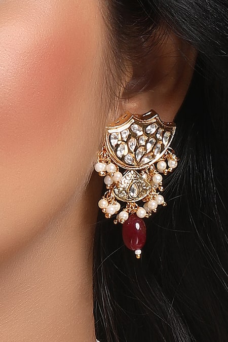 Gold Plated Pearls Kundan Embellished Earrings