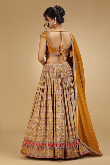 Buy_Jhambthreads_Mustard Silk, Georgette, Crepe Embroidery, Sequins, Beads, Blouse And Lehenga Set
