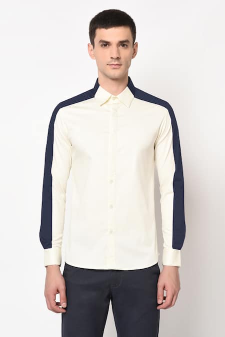 Off white slim fit shirt with shoulder and collar panel detailing.