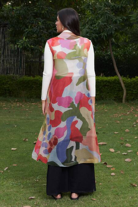 Multi Color Silk Organza Notched Collar Trench Coat