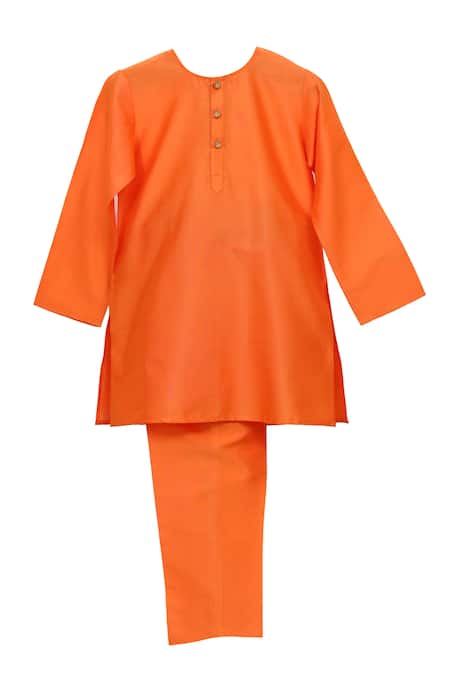 Buy_Minime Organics_Orange Cotton, Silk Round Neck Kurta And Pyjama Set _at_Aza_Fashions