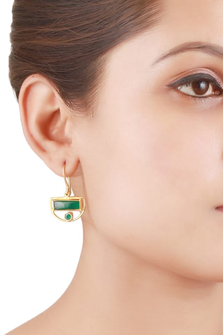 Green Stones Handcrafted Geometric Motif Earrings