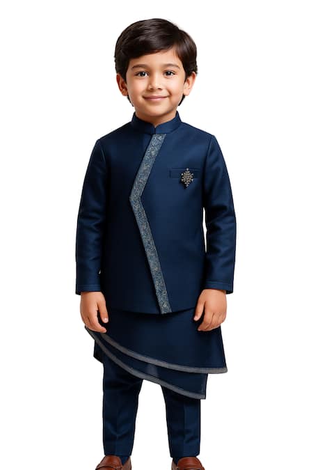 Asymmetric Embroidered Achkan Trouser Set