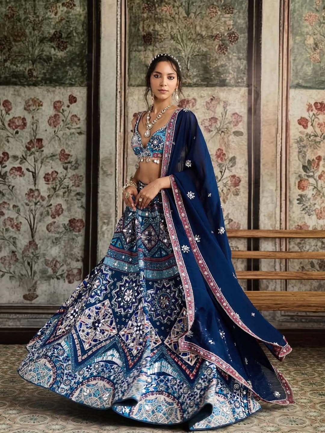 Seema Gujral’s grandeur lies in her florals — woven or embellished, each petal-rich detail feels timeless. Lehengas that doesn’t just follow a trend, but defines one… forever ruling our hearts with its opulent, ever-blooming charm.