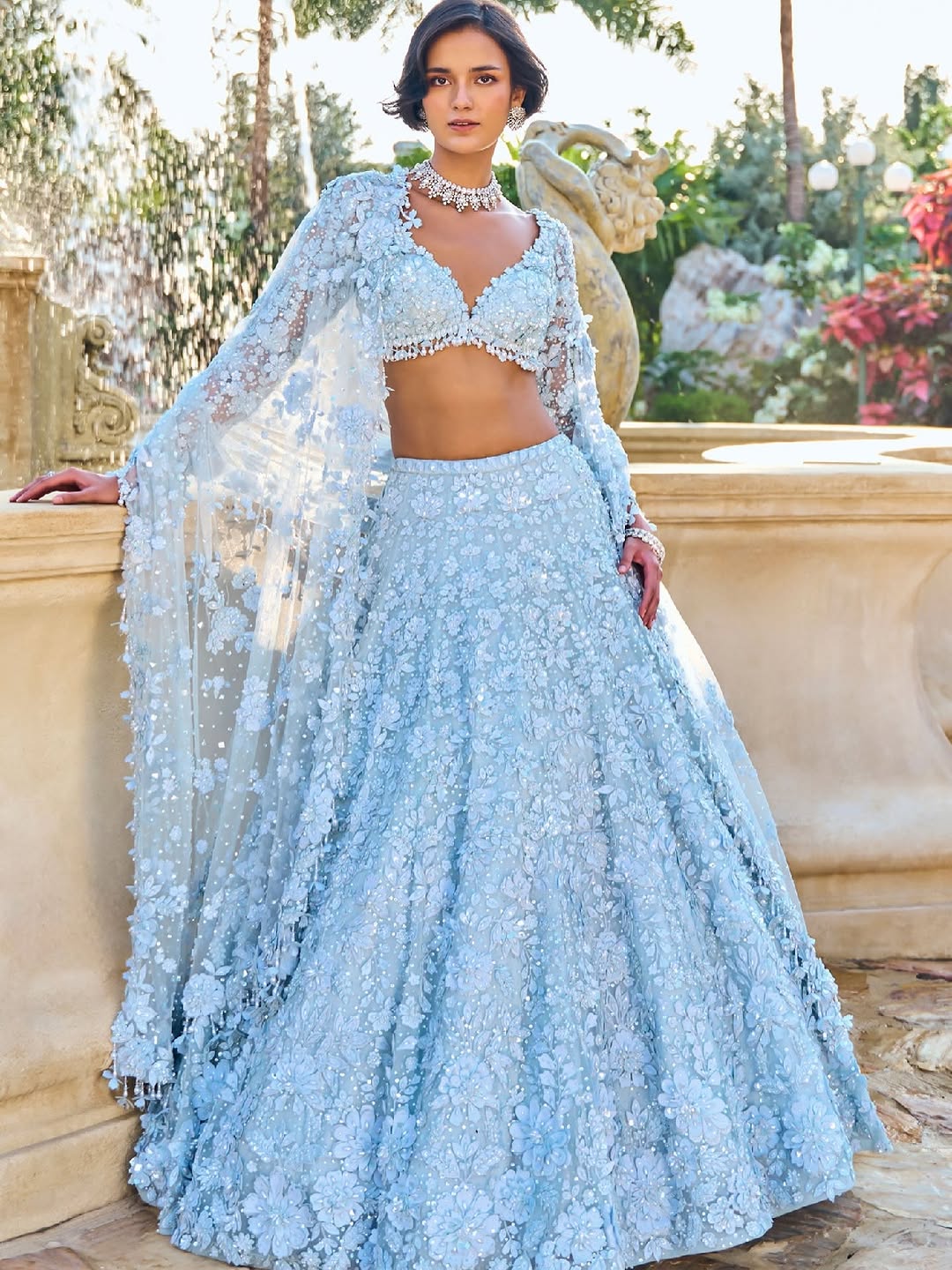 Floral printed lehengas with sculpted blouses and flowy, flirtatious skirts — a spring-summer staple that brings the joy of fresh blooms and mood-lifting hues to every celebration.
