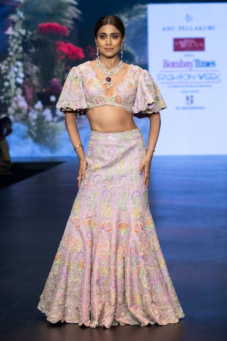 Buy_Anu Pellakuru_Purple Silk Floral Resham Embroidered Mermaid Bridal Lehenga With Crop Top