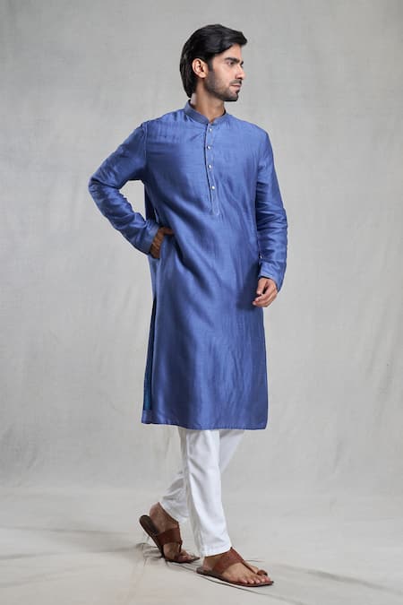 Blue straight kurta featuring a Mandarin collar and full sleeves
