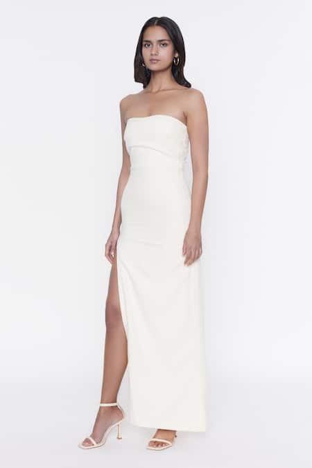 Buy_Deme By Gabriella_White Banana Crepe Strapless Gown_Online_at_Aza_Fashions
