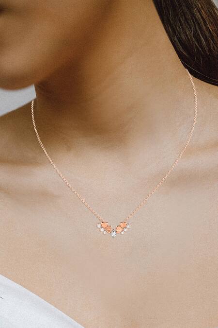 Rose gold pendant necklace featuring round cut diamonds with floral motifs. Embellished with a total solitaire carat of 0.23, perfect for elegant occasions.