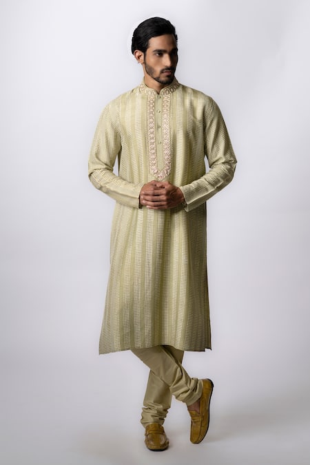 Green Tussar Embroidered Polka Dot Print Kurta Set