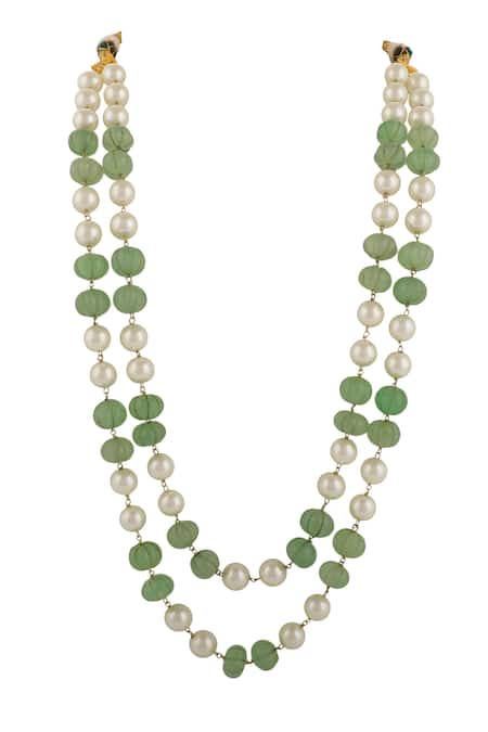 Buy_Riana Jewellery_White Dual Layered Mala _at_Aza_Fashions