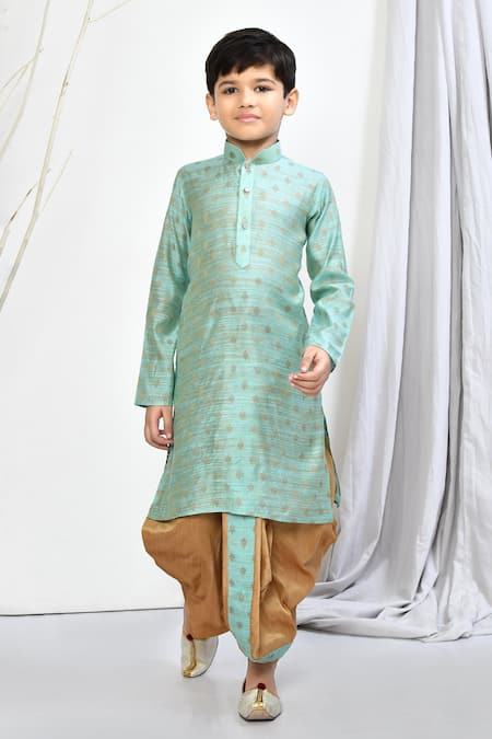 Buy_Petite Pomme_Green Brocade, Silk Embroidery Floral Woven Motif Kurta Dhoti Pant Set _Online_at_Aza_Fashions